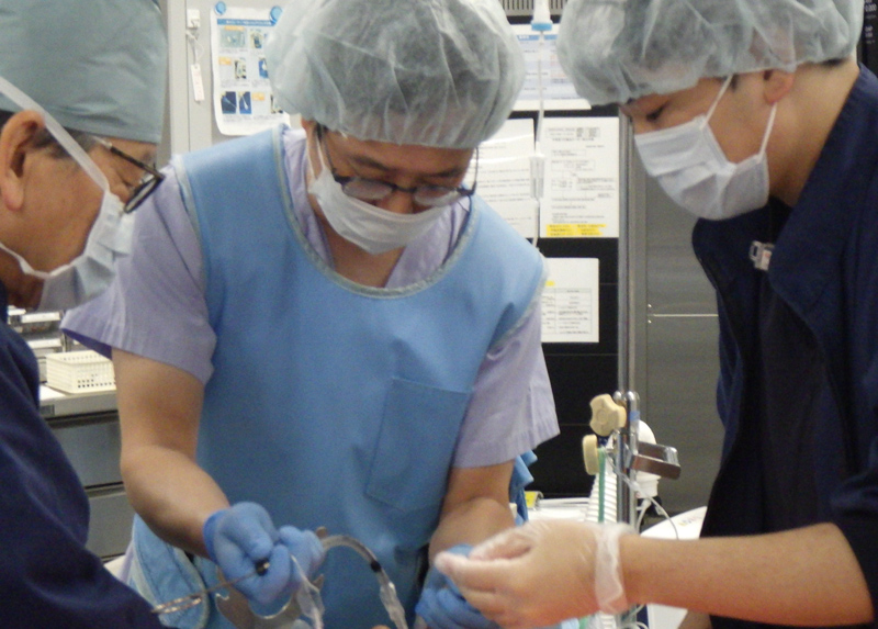 全身麻酔時は挿管(呼吸を助ける管を入れる)の介助をします。