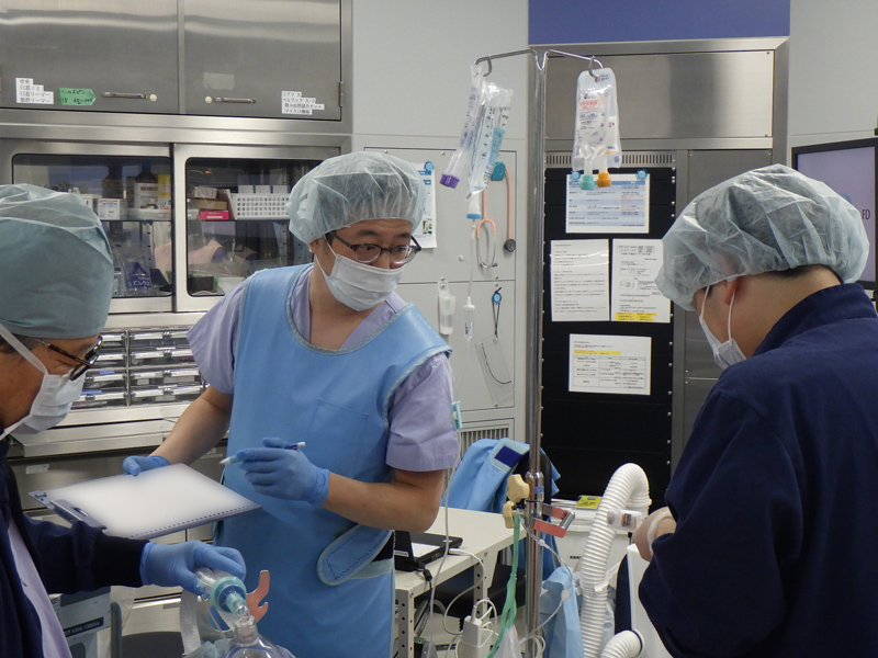 麻酔導入をするために麻酔医から薬剤の投与量の指示を受けます。