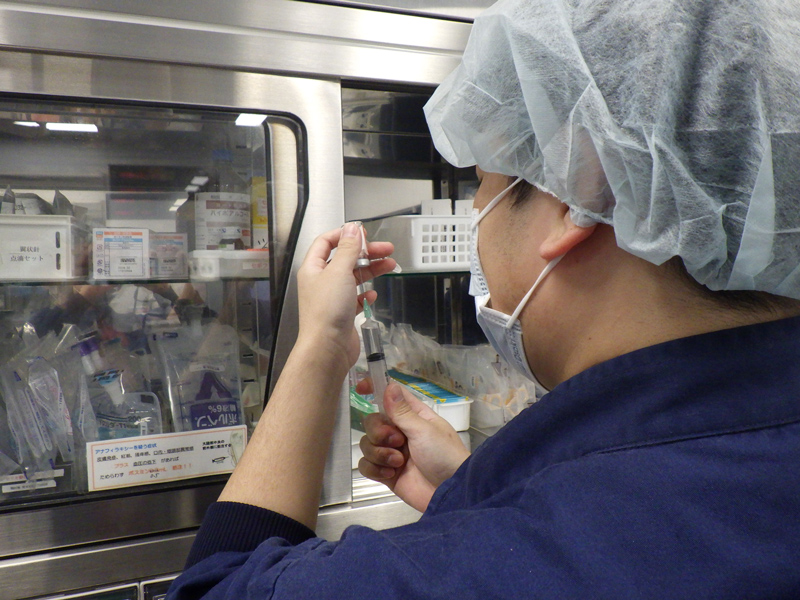 実際の手術に関わる看護師の役割には、直接介助と間接介助があります。当院では、一部の手術を除き間接介助は2名で役割を分担して行ないます。今回は、その中の麻酔係についてご紹介します。